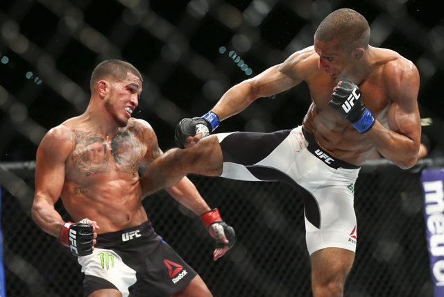6) Underrated toughness – When discussing Anthony Pettis, words like dynamic, creative, fast, talented, and offensive are all used; these highlight the physical gifts he has been blessed with and the variety of ways he takes advantage of them in the course of a mixed martial arts fight. But what is rarely given any attention is the mental and physical toughness that accompanies these other gifts he possesses. In ten and a half years of fighting; essentially fighting the best prospects and veterans in the world, he has only been stopped once. That stoppage loss came as a weight-drained Pettis, who missed weight and forfeited his opportunity to fight for the featherweight title, faced Max “Blessed” Holloway, a fighter known for the blistering pace he sets and the ridiculous amount of volume he generates. The current UFC Featherweight Champion and owner of the longest win streak in the division outworked Pettis and won by stoppage as a result of strikes, namely body shots.